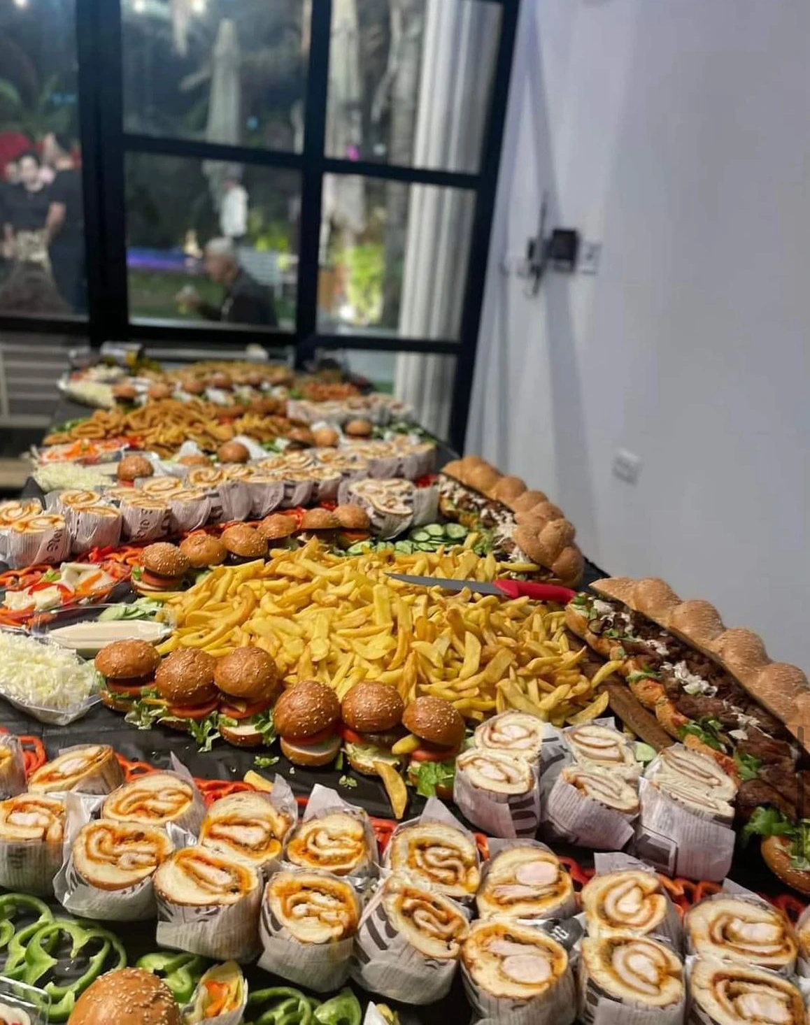 בופה מפנק הכולל: מבחר בשרים, אוכל אסייתי או בופה של כריכים.